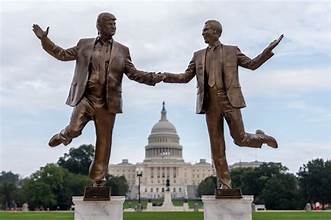 The White House itself, a.k.a. the “People’s House,” again also featured in the news as the last bits of the east wing bit the dust to prepare for the huge gilded ballroom that will soon be rising in its place. And one can only suspect that the rest of the old building will also go soon to make way for another Trump International golf course, a spectacular venue for entertaining the world’s plutocrats, no Palestinians allowed, however. The course will be reached by a yet to be designed ceremonious parade route starting at a huge Trump-phal Arch at the Virginia side of the Memorial Bridge and spanning the Potomac River to arrive at the Lincoln Memorial and the Mall.